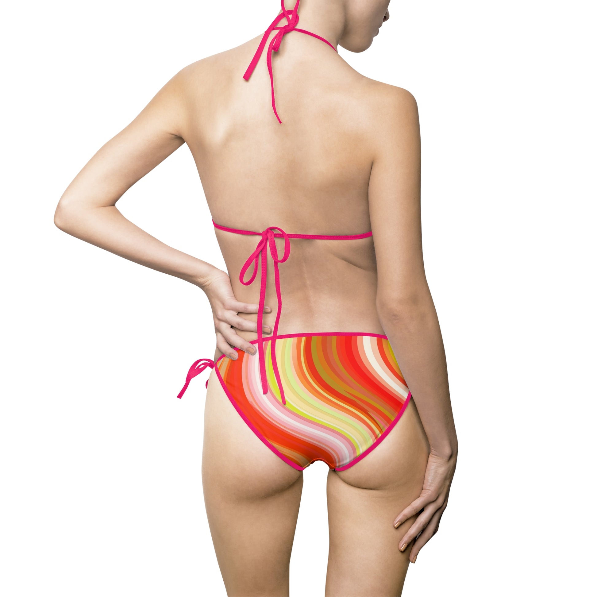 Unleash your bold side with the Tag Me Tie-String Bikini, where street art meets surfside heat. This vibrant bikini features a graffiti-inspired swirl of red, orange, lime, and blush tones—designed to turn heads from beach boardwalks to rooftop pools. With adjustable triangle cups and side-tie bottoms, it delivers a flattering, customizable fit while making a high-impact style statement.