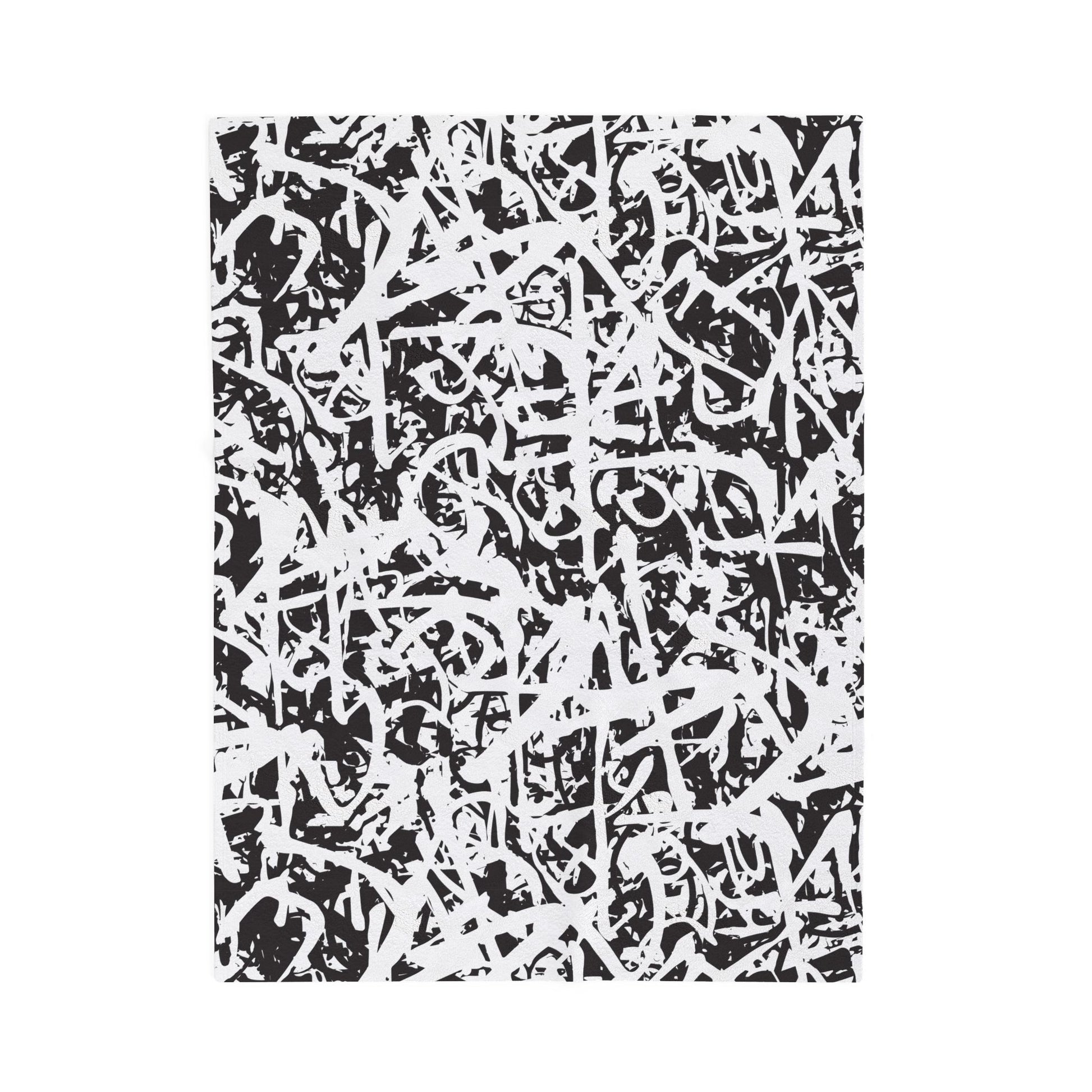 "Ink Riot" Velveteen Plush Graffiti Throw Blanket, Cozy Gift for Home Decor, Trendy Throws for Winter, Unique Bedding, Soft Decorative Throw