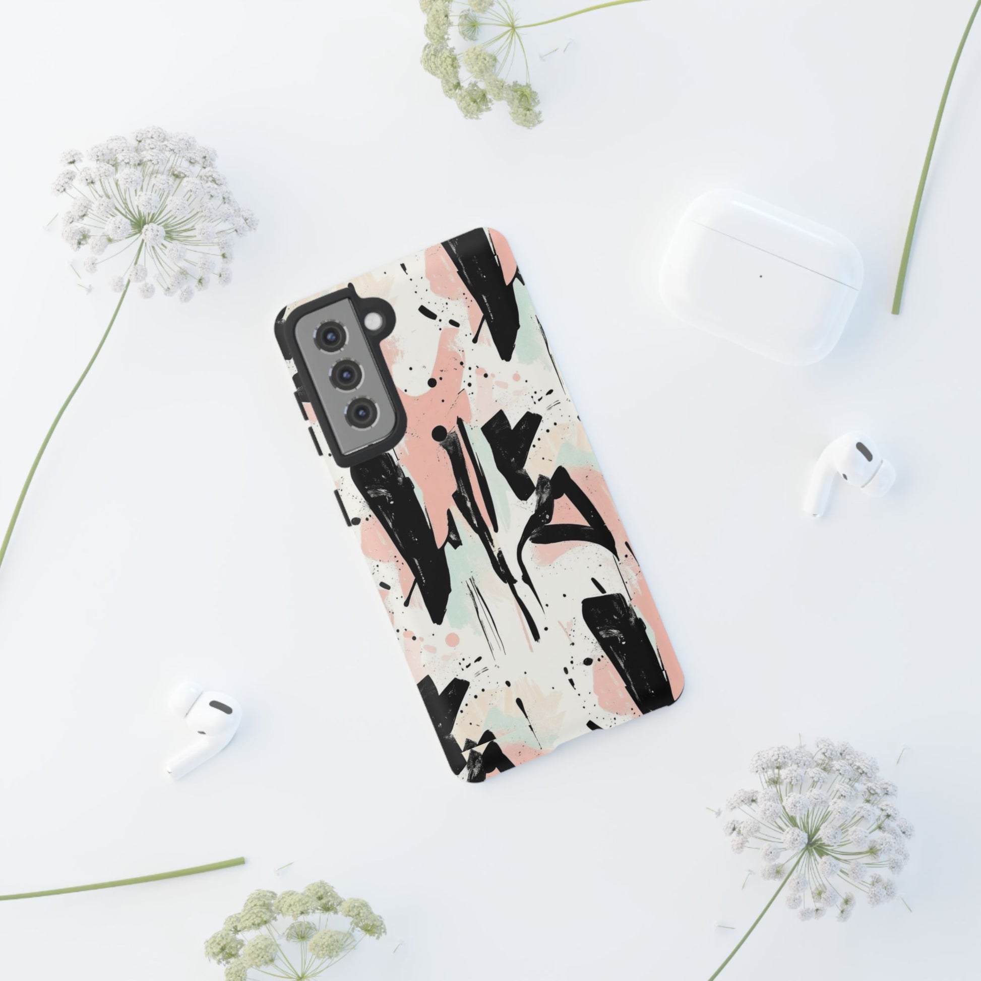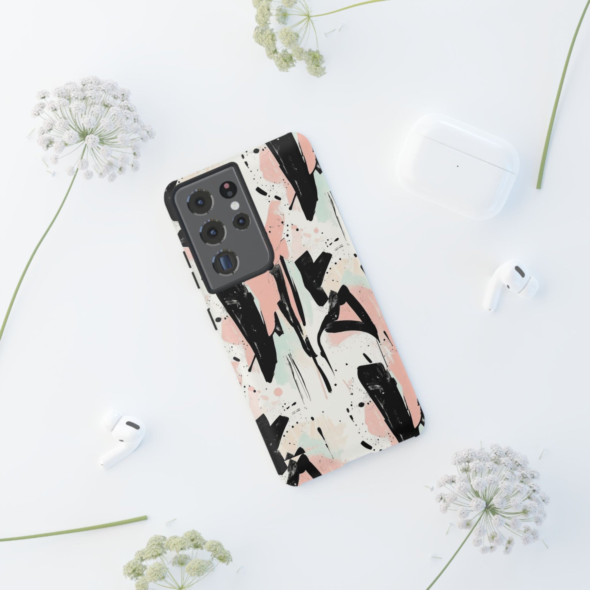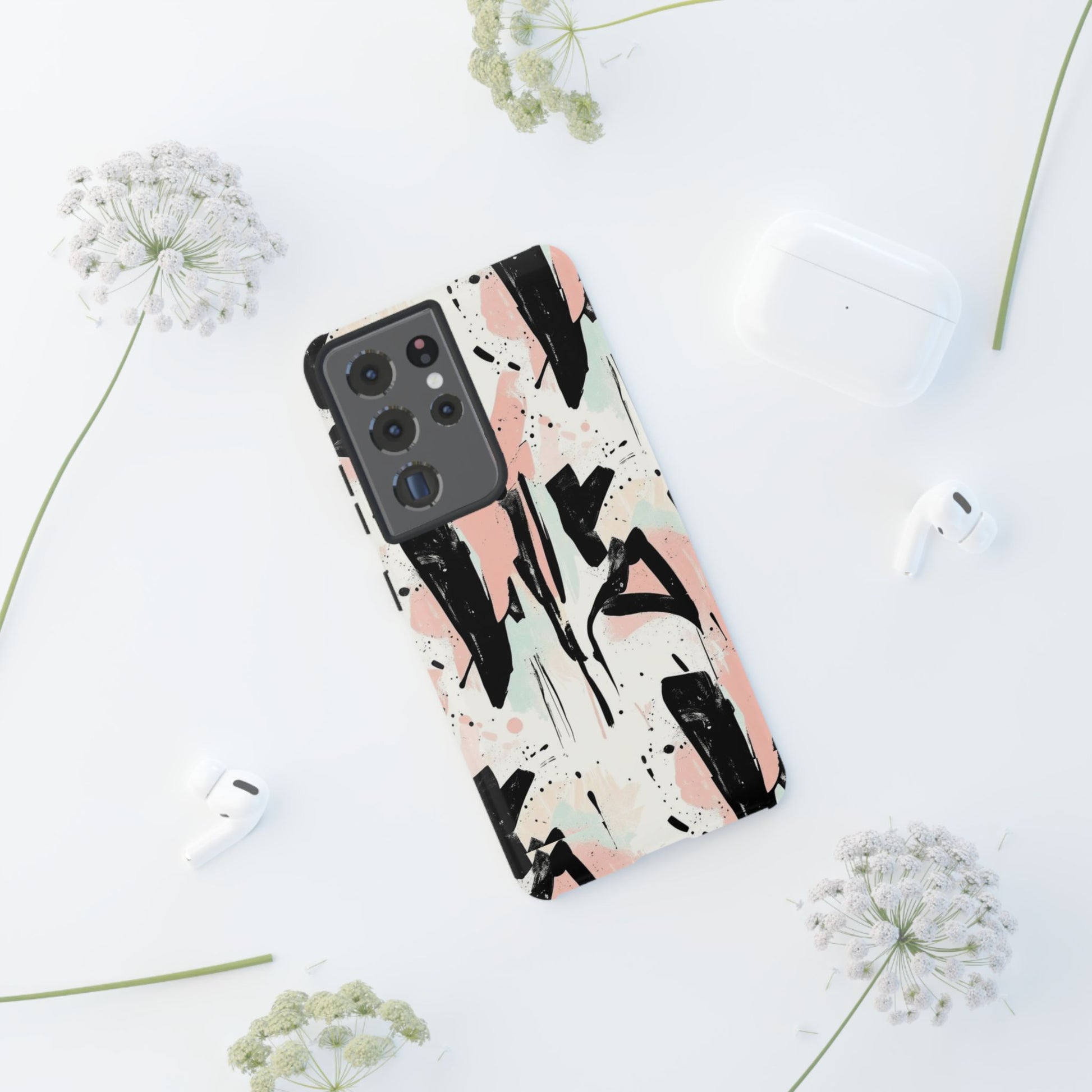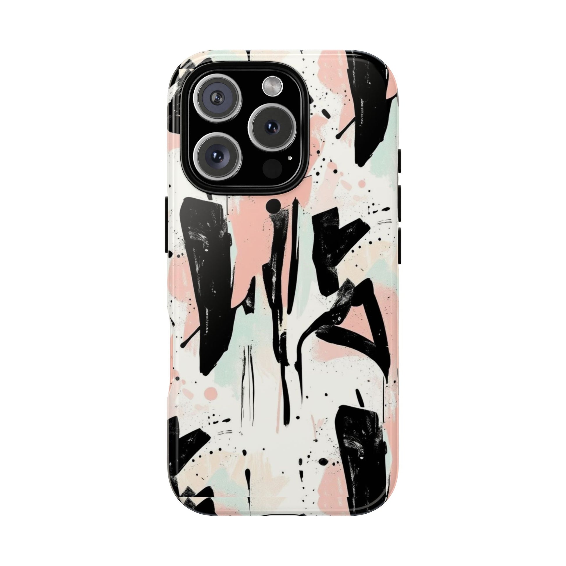 Where soft meets street. The Blush Rush Armor Case fuses abstract brushstroke chaos with a delicate pastel vibe. Featuring expressive black graffiti-style marks splashed across a creamy blush and soft mint background, this case adds artistic edge without overwhelming your aesthetic. Built to protect and designed to impress, it’s perfect for those who live boldly—even in subtle tones.