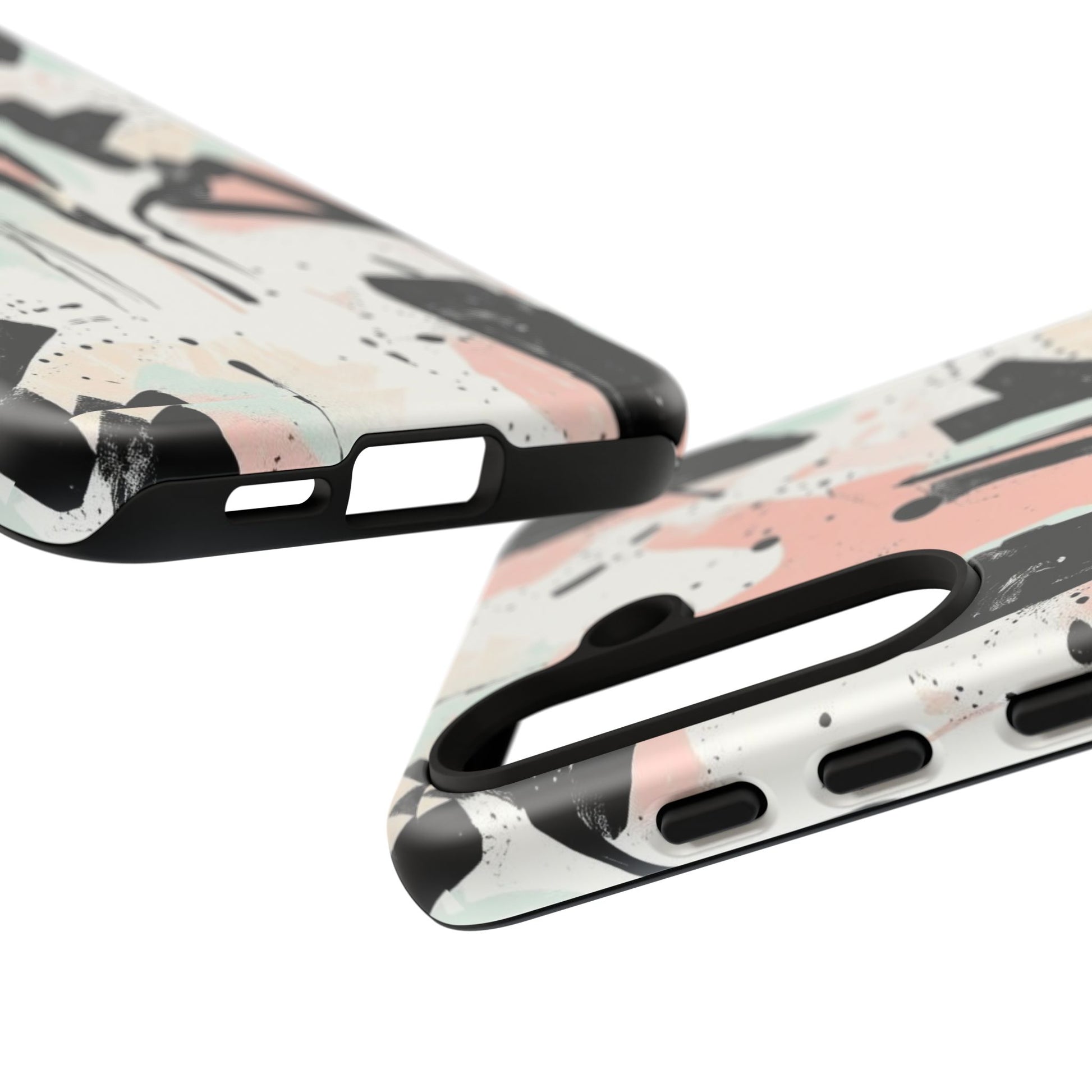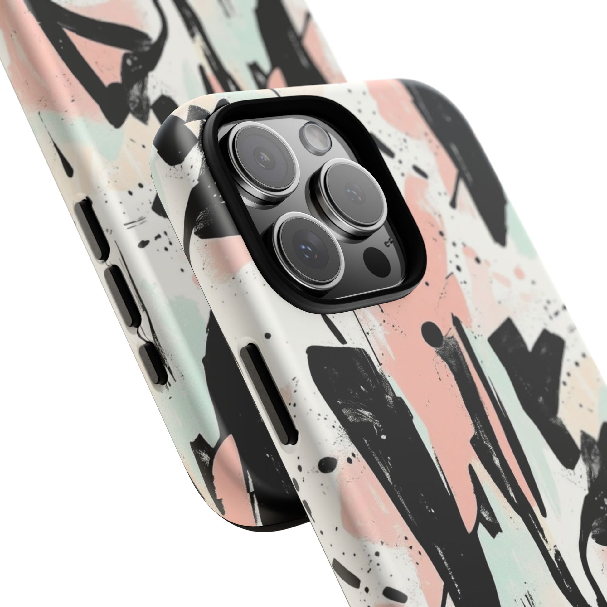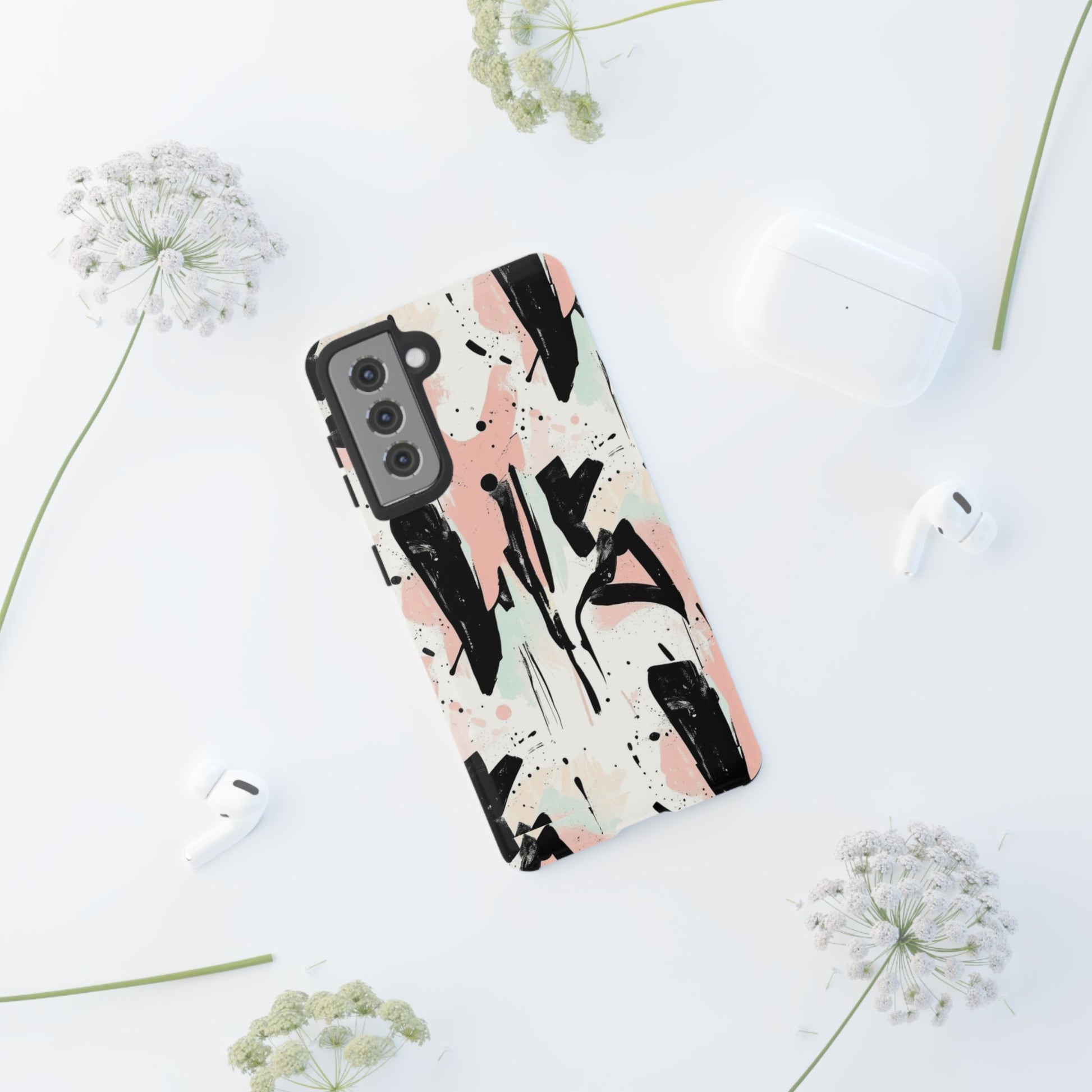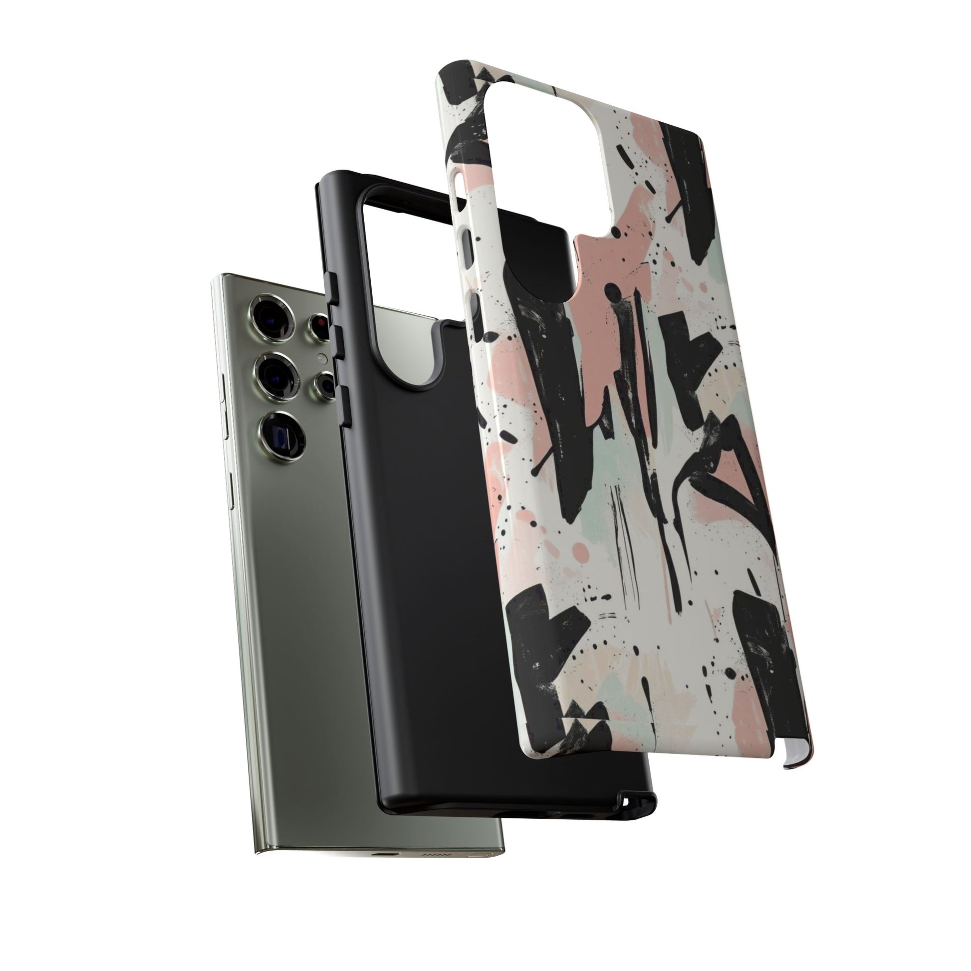 Where soft meets street. The Blush Rush Armor Case fuses abstract brushstroke chaos with a delicate pastel vibe. Featuring expressive black graffiti-style marks splashed across a creamy blush and soft mint background, this case adds artistic edge without overwhelming your aesthetic. Built to protect and designed to impress, it’s perfect for those who live boldly—even in subtle tones.