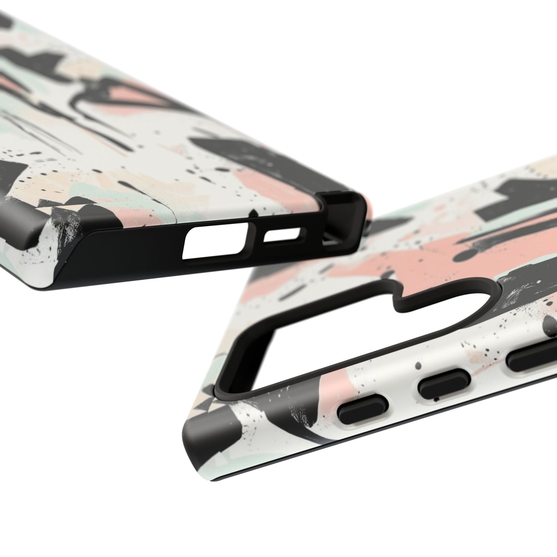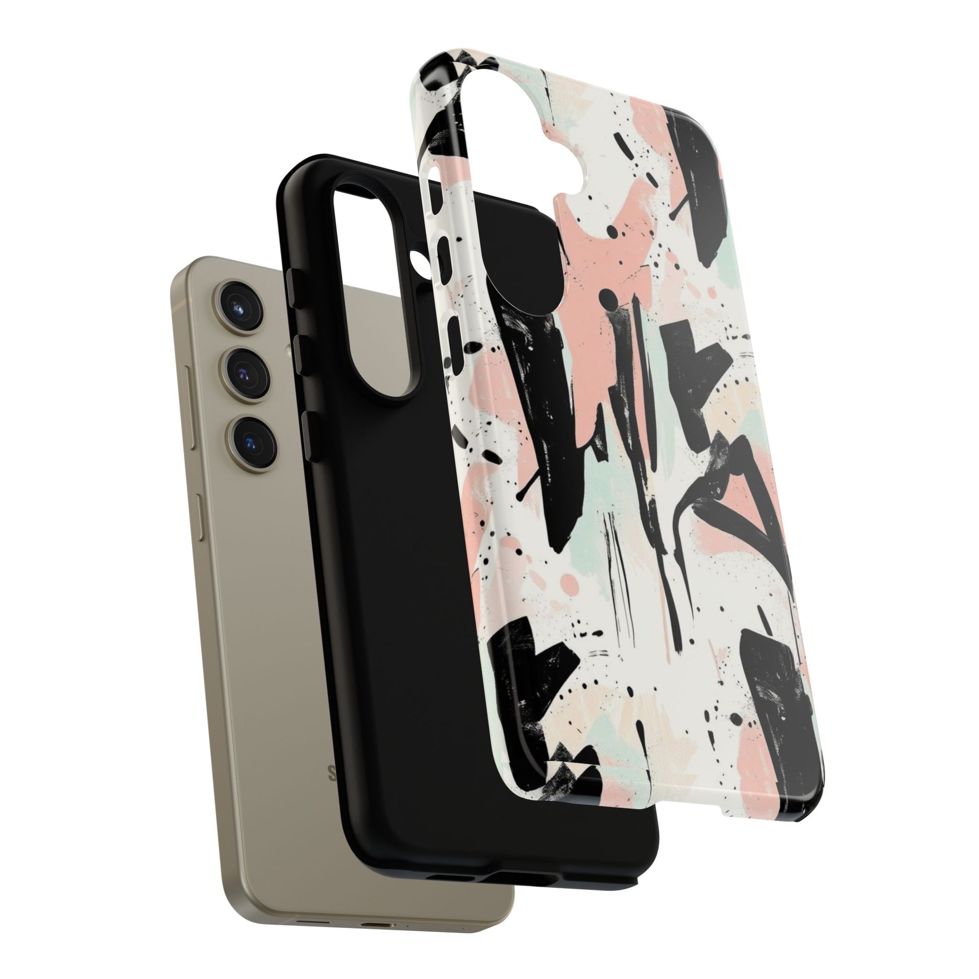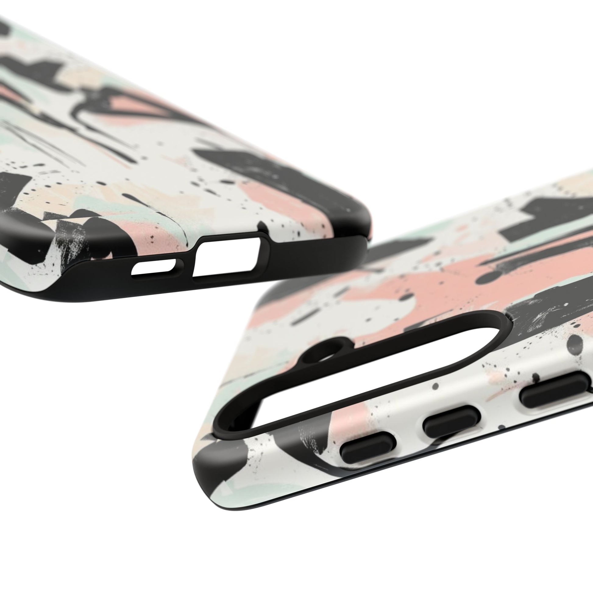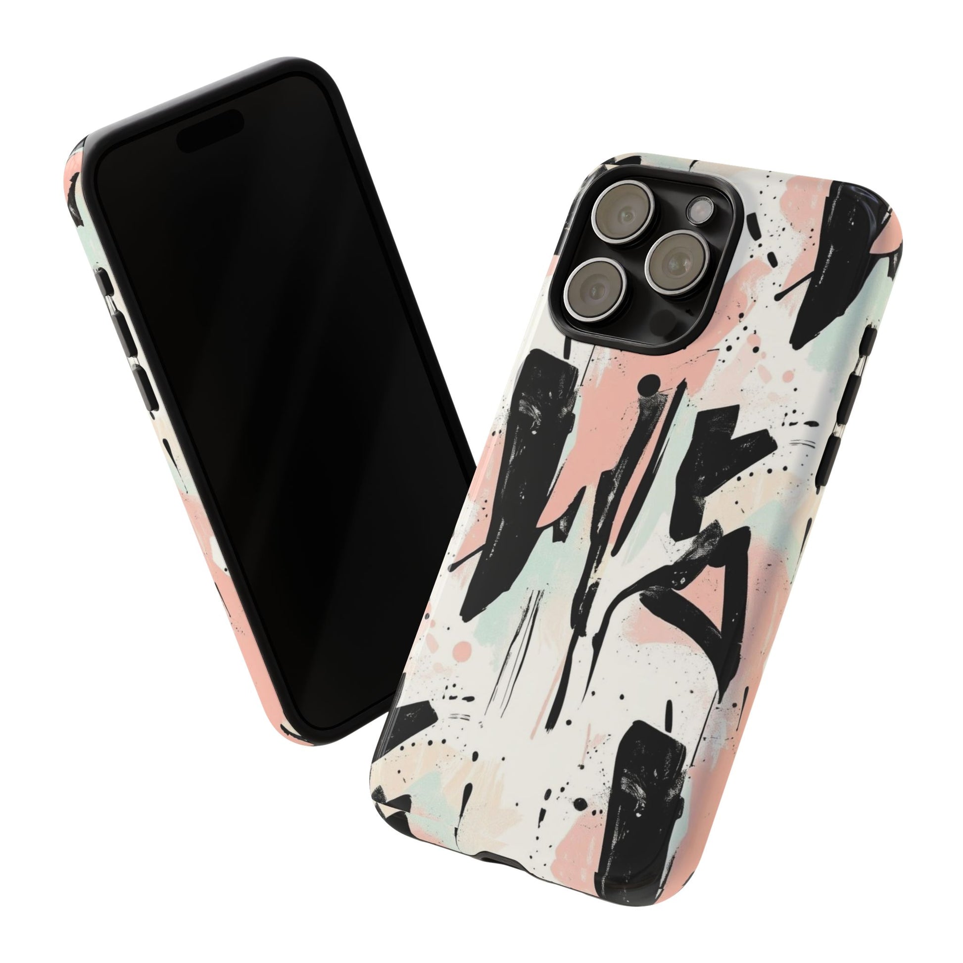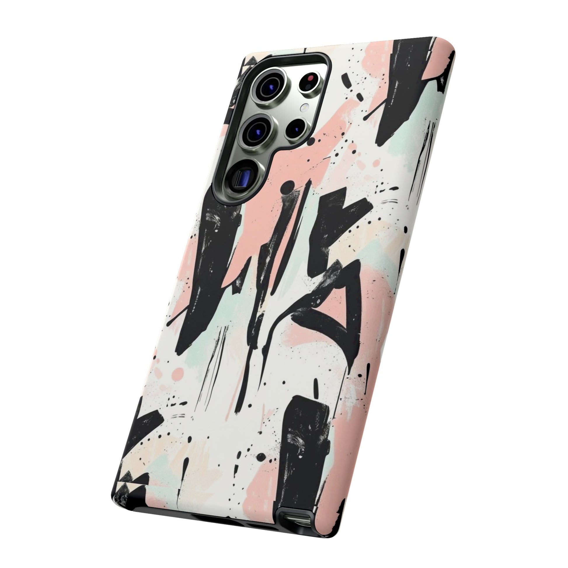 Where soft meets street. The Blush Rush Armor Case fuses abstract brushstroke chaos with a delicate pastel vibe. Featuring expressive black graffiti-style marks splashed across a creamy blush and soft mint background, this case adds artistic edge without overwhelming your aesthetic. Built to protect and designed to impress, it’s perfect for those who live boldly—even in subtle tones.