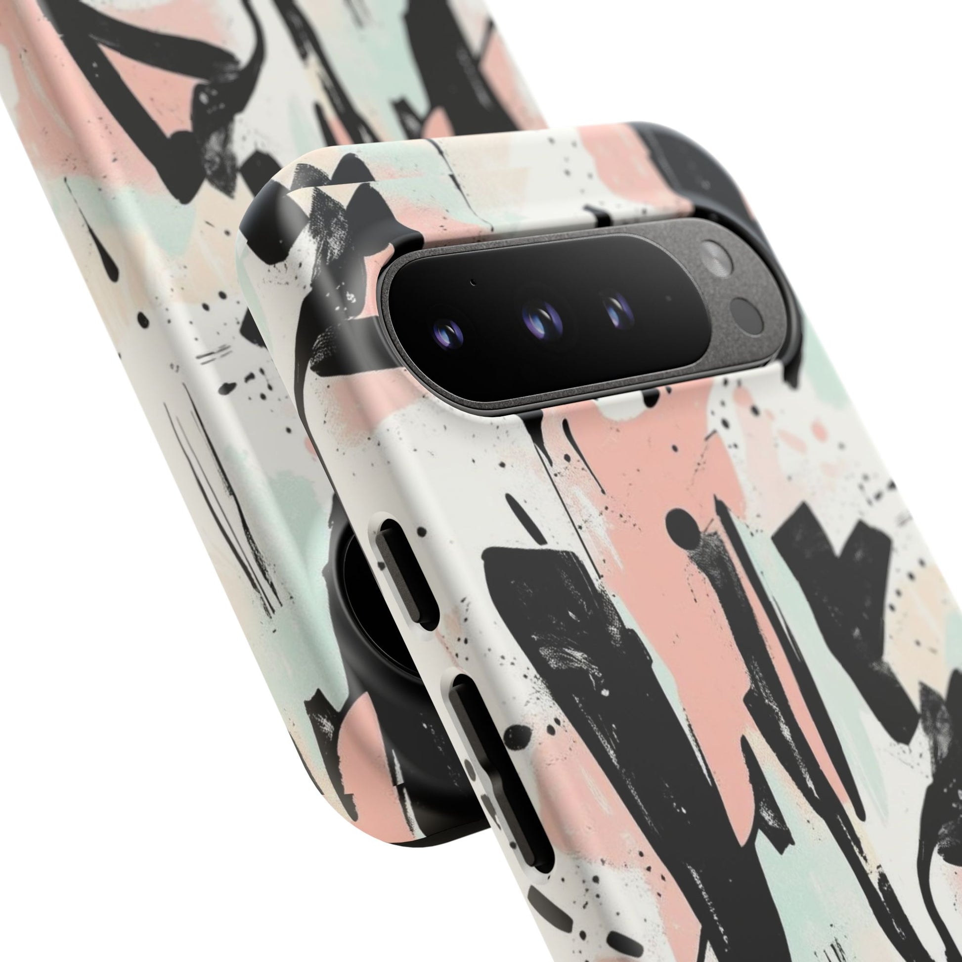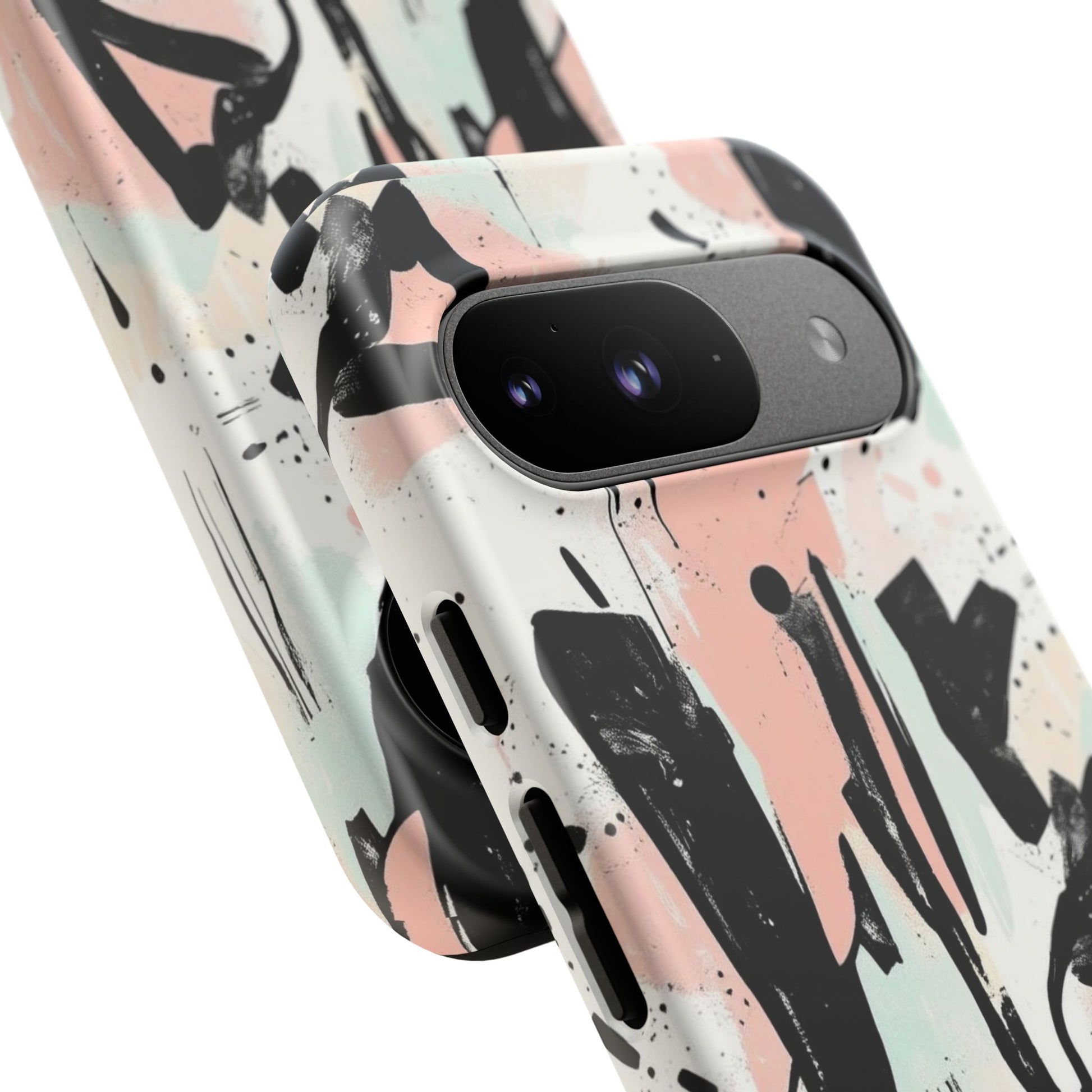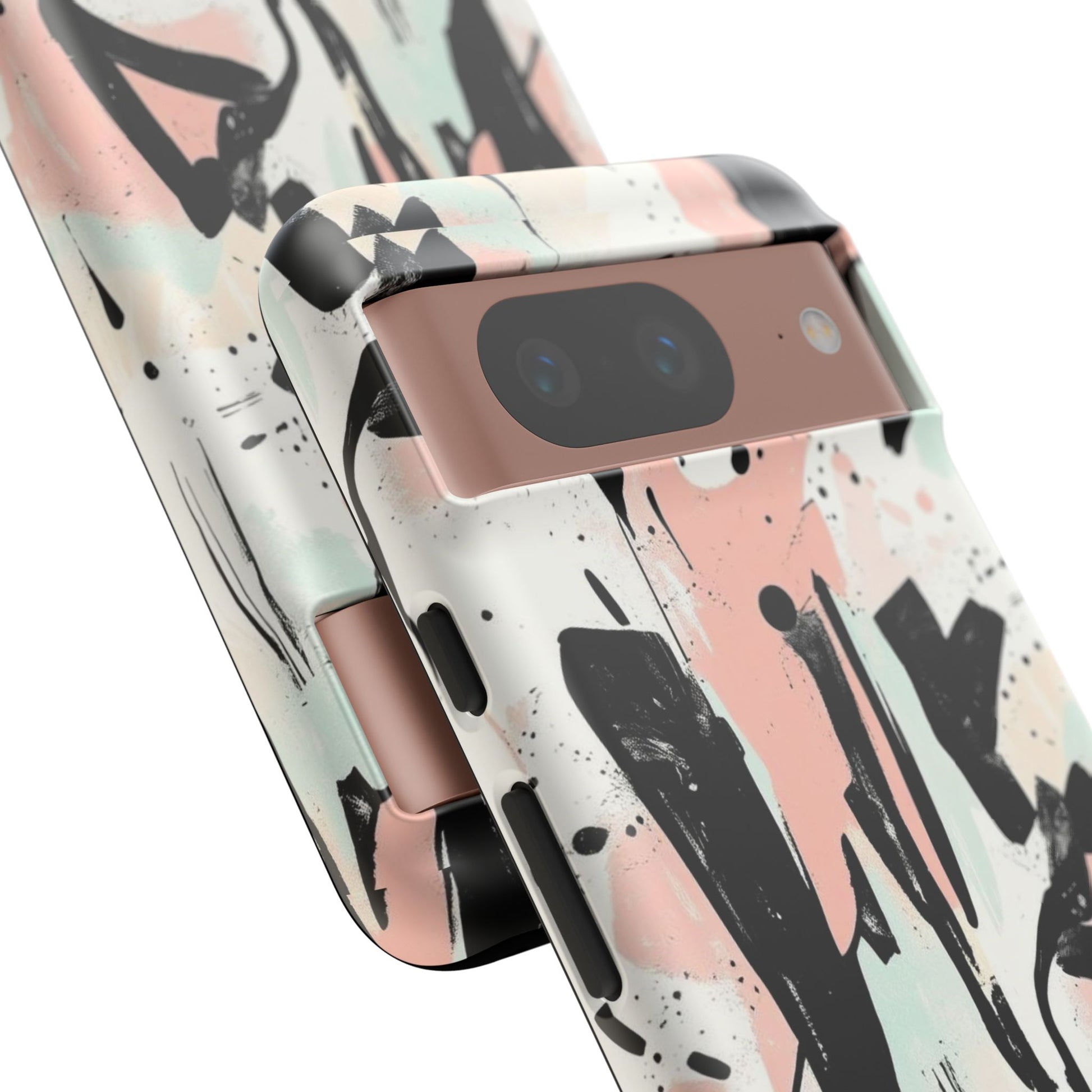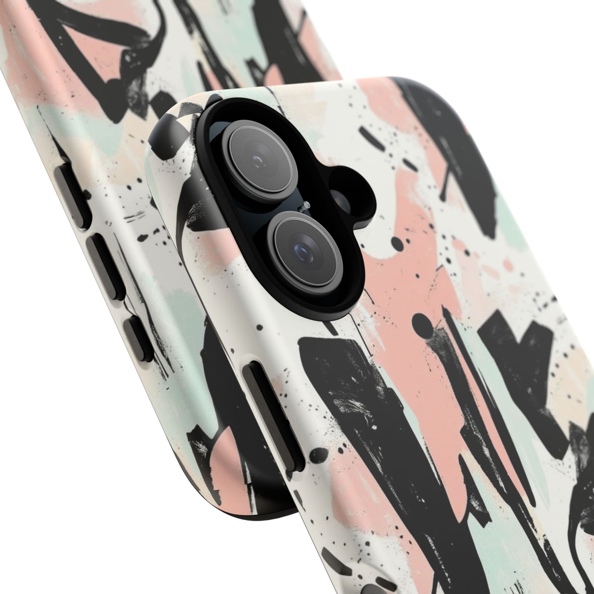 Where soft meets street. The Blush Rush Armor Case fuses abstract brushstroke chaos with a delicate pastel vibe. Featuring expressive black graffiti-style marks splashed across a creamy blush and soft mint background, this case adds artistic edge without overwhelming your aesthetic. Built to protect and designed to impress, it’s perfect for those who live boldly—even in subtle tones.