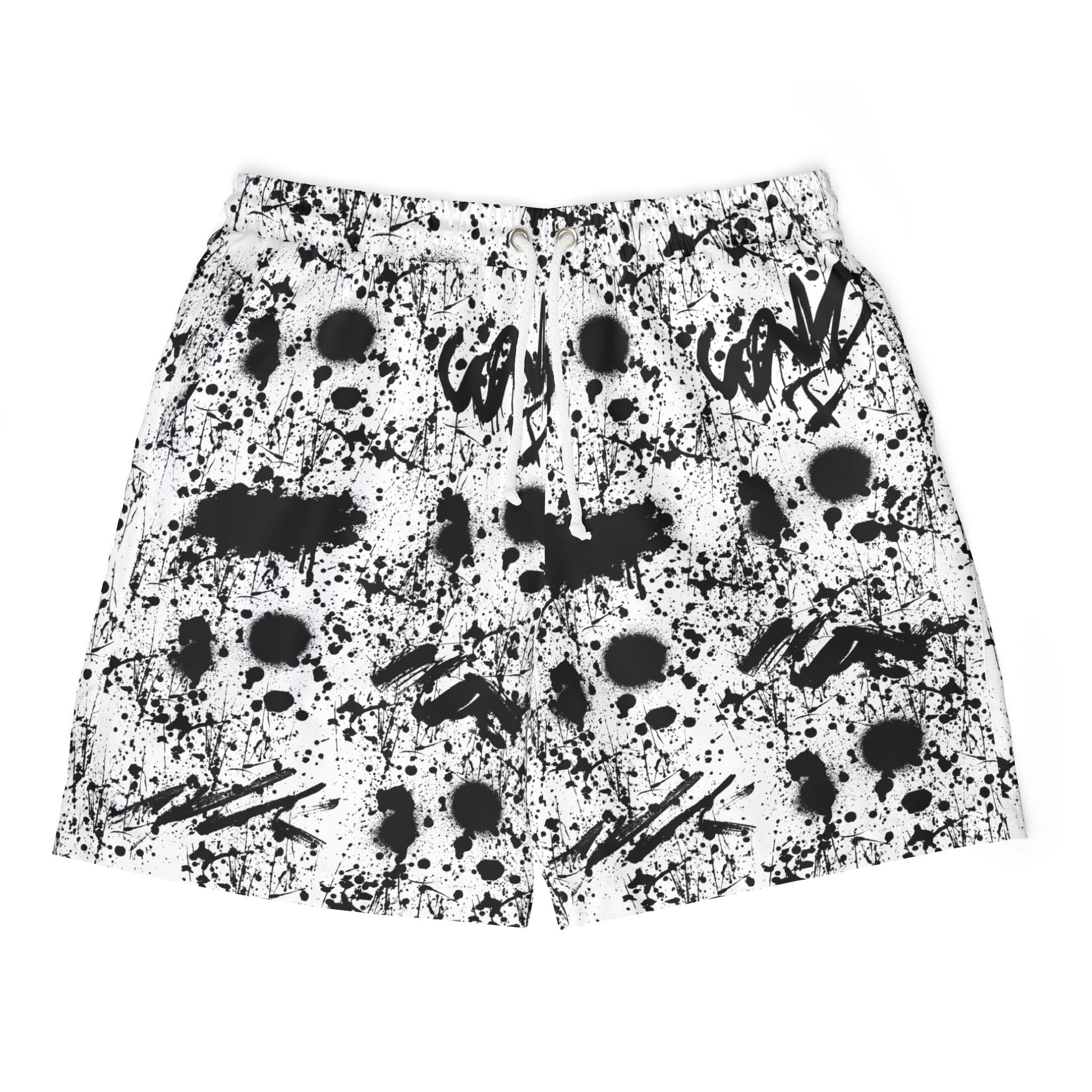 Tag & Splash Graffiti Print Unisex Swim Shorts