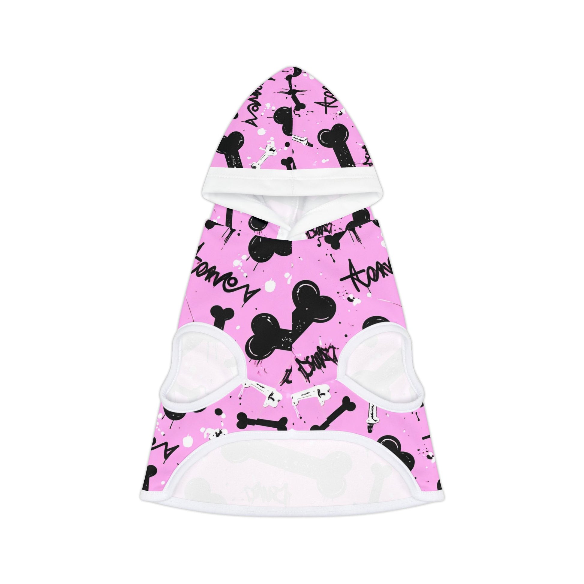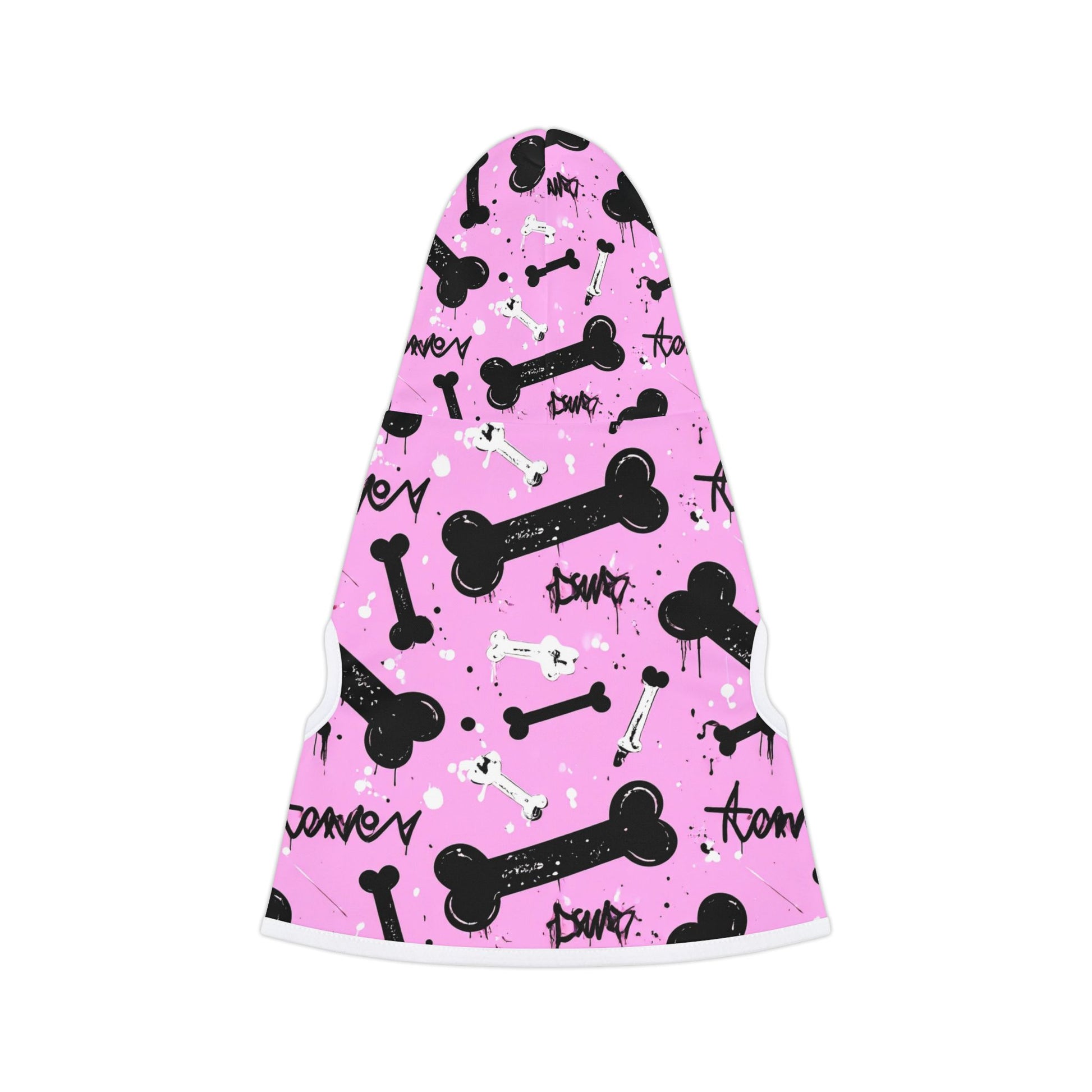 This Pink Graffiti print fun bone print pet hoodie is perfect for pet owners looking to add a touch of style to their furry friend's wardrobe. The hoodie is made of 100% soft polyester, making it comfortable and durable. Ideal for pet lovers celebrating birthdays, holidays, or just looking to pamper their pet.